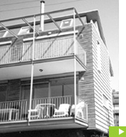 dielenbelegten Balkon.